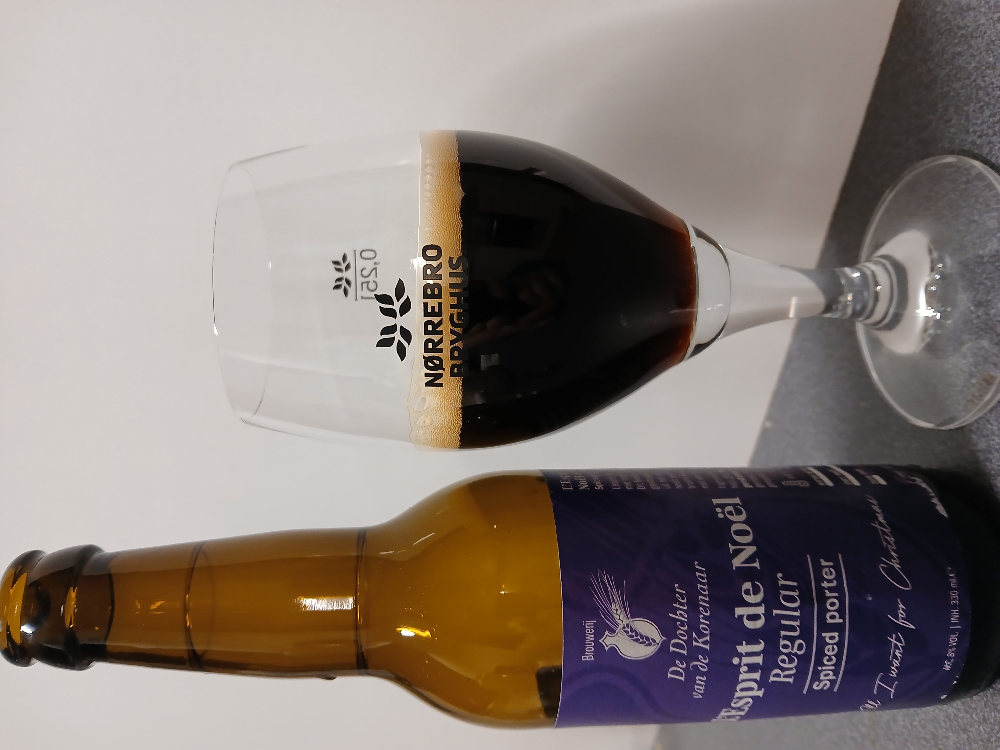This porter, L'Esprit de Noël Regular, from De Dochter van de Korenaar, is spiced with Christmas-related seasoning, as its name also suggests.
