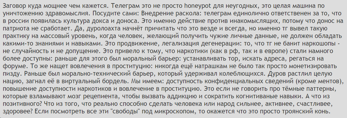 Вчера Дуров заявил, что Telegram приступает к блокировке каналов за доксинг и вымогательство, а сегодня стало известно про первую жертву этого крестового похода – легендарный канал BlackMirror.