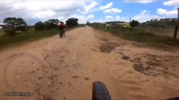 Бык напал на проезжающих велосипедистов.mp4